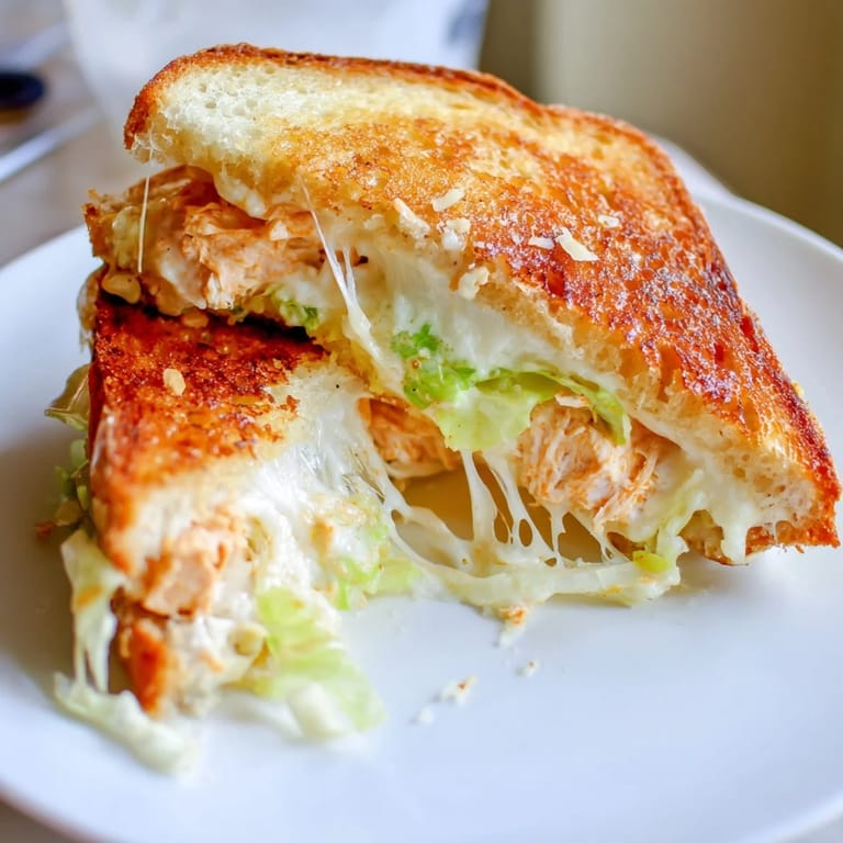 Spread butter on the outside of the bread before grilling to create a protective barrier. Don't over-soak the interior with dressing—use just enough Caesar to coat lightly. Assemble the sandwich closer to cooking time to minimize moisture absorption.