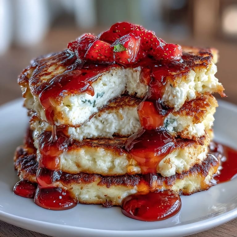 Save to Pinterest There's something about homemade strawberry syrup that turns a simple breakfast into a small celebration, and these cottage cheese pancakes deserve that moment. They've become the thing I make when I want to feel like I'm doing something nice for myself on a random weekend morning.