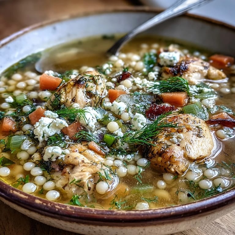 Save to Pinterest Embrace the bright and comforting flavors of the Mediterranean with this Greek Chicken & Pearl Couscous Soup. This dish transforms simple staples like chicken and root vegetables into a vibrant, lemon-infused meal that is both hearty and refreshing. The addition of chewy pearl couscous and salty crumbled feta makes it a satisfying standout for any weeknight dinner.