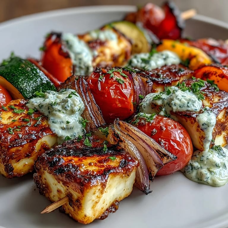 Save to Pinterest Last summer, my neighbor brought over halloumi cheese he'd discovered at a market in Cyprus, and I had no idea what to do with it until he mentioned grilling it. That first attempt was gloriously simple—chunks of cheese turning golden on the grill, squeaking between my teeth, paired with whatever vegetables I had scattered around the kitchen. Now these skewers are the first thing I reach for when friends come over on warm evenings, because they manage to be both impressive and completely unfussy.