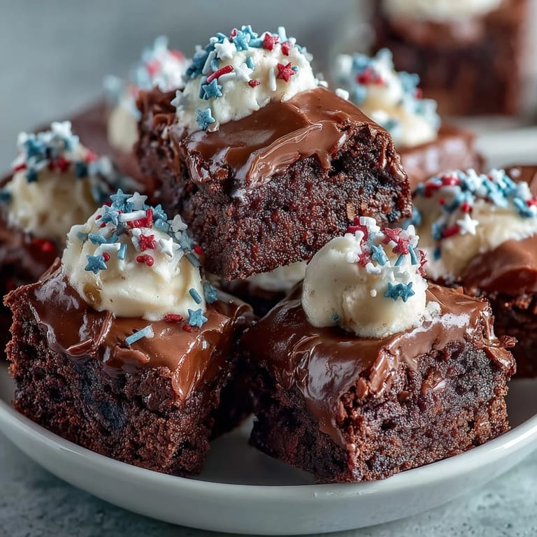 Save to Pinterest My neighbor showed up at my door one Fourth of July morning with store-bought brownie bites, and I realized right then I needed to make my own version. There's something about baking small enough to eat in one blissful bite that changes everything, especially when you're dotting them with frosting and patriotic sprinkles. These fudgy little gems became my kitchen solution for feeling festive without the fuss, and now they're the first thing I bake when the holiday rolls around.