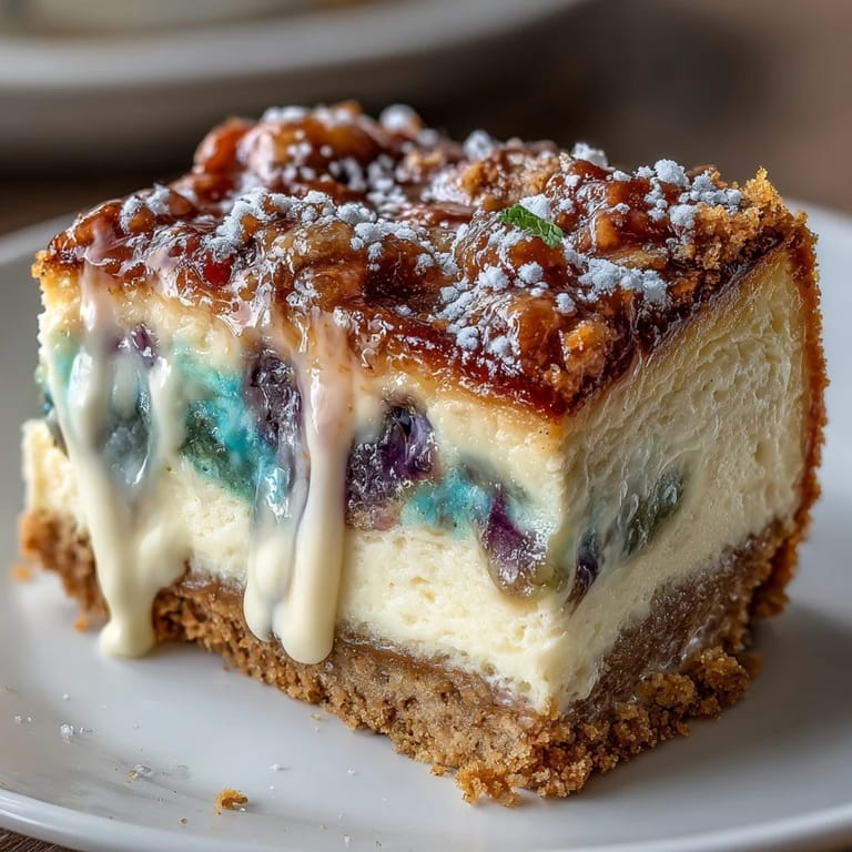Save to Pinterest Last February, my neighbor showed up with a box of king cake from New Orleans, and I couldn't stop thinking about those jewel-toned swirls and that creamy center. The next morning, I was determined to capture that same magic in bar form, but with cheesecake instead of the traditional yeast cake. What started as an experiment in my kitchen turned into something I've made for every celebration since, and honestly, it's become the thing people ask for before they even ask what I'm baking.