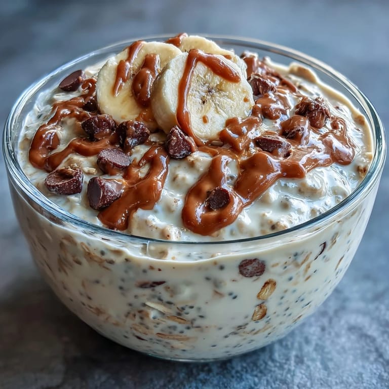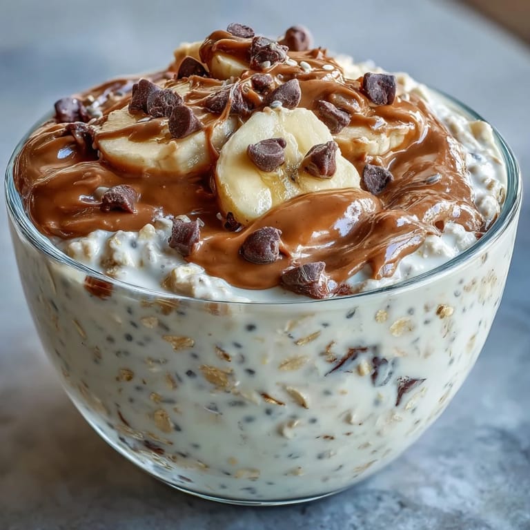 Save to Pinterest My roommate texted me at 6 AM one Tuesday asking if I could make her something she could grab before her early shift, and I remembered the jar of peanut butter sitting in our pantry next to some chocolate chips left over from baking. That's how overnight oats became my answer to her rushed mornings—no cooking required, just patience and a refrigerator. Now when I see those glass jars lined up on the shelf at night, I know tomorrow's breakfast is already waiting, creamy and thick and tasting like someone cared enough to prepare it.